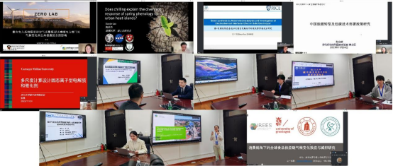优秀青年学者代表从减污降碳技术、二氧化碳捕集利用技术和资源碳中和技术等方面,基于自己的科研方向和研究成果进行了精彩的学术报告。美国哈佛大学的高孝杰博士后、普林斯顿大学的罗茜博士后、莱斯大学的张守坤博士后、达特茅斯公司张磊博士后、劳伦斯伯克利国家实验室彭立群博士后分别以“冷激效应对城市植被春季物候的影响”“整合电力系统模型与空气质量模型以减缓电力部门对气候变化和公共健康的影响”“镍-电催化绿色合成以及固态电解池中的电化学界面效应研究”“多尺度计算设计固态离子型电解质和催化剂”“中国能源转型及低碳技术部署政策研究”为题作了报告。日本东京农工大学的彭明明助理教授分享了在“分子筛多孔材料与生物质能源”领域的研究成果,京都大学的汪家琦博士后讲解了在“热解辅助下的木质素催化降解”方面的科研进展。德国德累斯顿工业大学的张宁博士围绕“The transition of the built environment towards circular economy and low carbon”分享科研心得和体会。荷兰格罗宁根大学的李彦显博士、瓦赫宁根大学的谌娜博士分别阐述了各自在“全球食品供应链气候变化效应与减排研究”“基于多源遥感数据的森林扰动与生长监测”等方面的研究。同济大学姜一琳博士详细介绍了“基于含氮杂环羧酸的有机-无机晶格框架的构筑及光催化研究”。随后,与会人员进行了充分地交流、讨论。