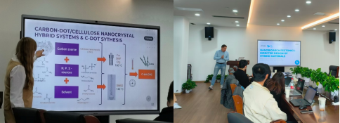 与会师生围绕以可再生碳源等天然聚合物为原料合成碳点材料、纳米纤维素等高值化低碳材料的技术路径,及其在清洁能源开发、污染治理等碳中和关联领域的可持续应用主题展开热烈讨论。本次论坛既为师生搭建了多学科融合交叉的学术交流桥梁,拓宽了其在双碳目标下的研究视野,也为公司深化国际科研合作、培育跨学科绿色创新人才、助力低碳技术创新与产业赋能提供了重要支撑