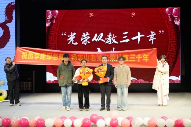 “光荣从教三十年”庆典活动上,祝贺并表彰李建军教授与杨志山副教授两位老师。李建军教授作为教师代表(K1体育官方网站“德渥群芳”优秀导师团队负责人)向师生送上新年祝词,分享团队建设及科研工作的相关经验,真切地回顾了三十年的从教经历,将三十载耕耘凝练为对教育事业的赤诚与对科学探索的坚守,并鼓励师生积极奋斗,创造更多高价值科研成果。