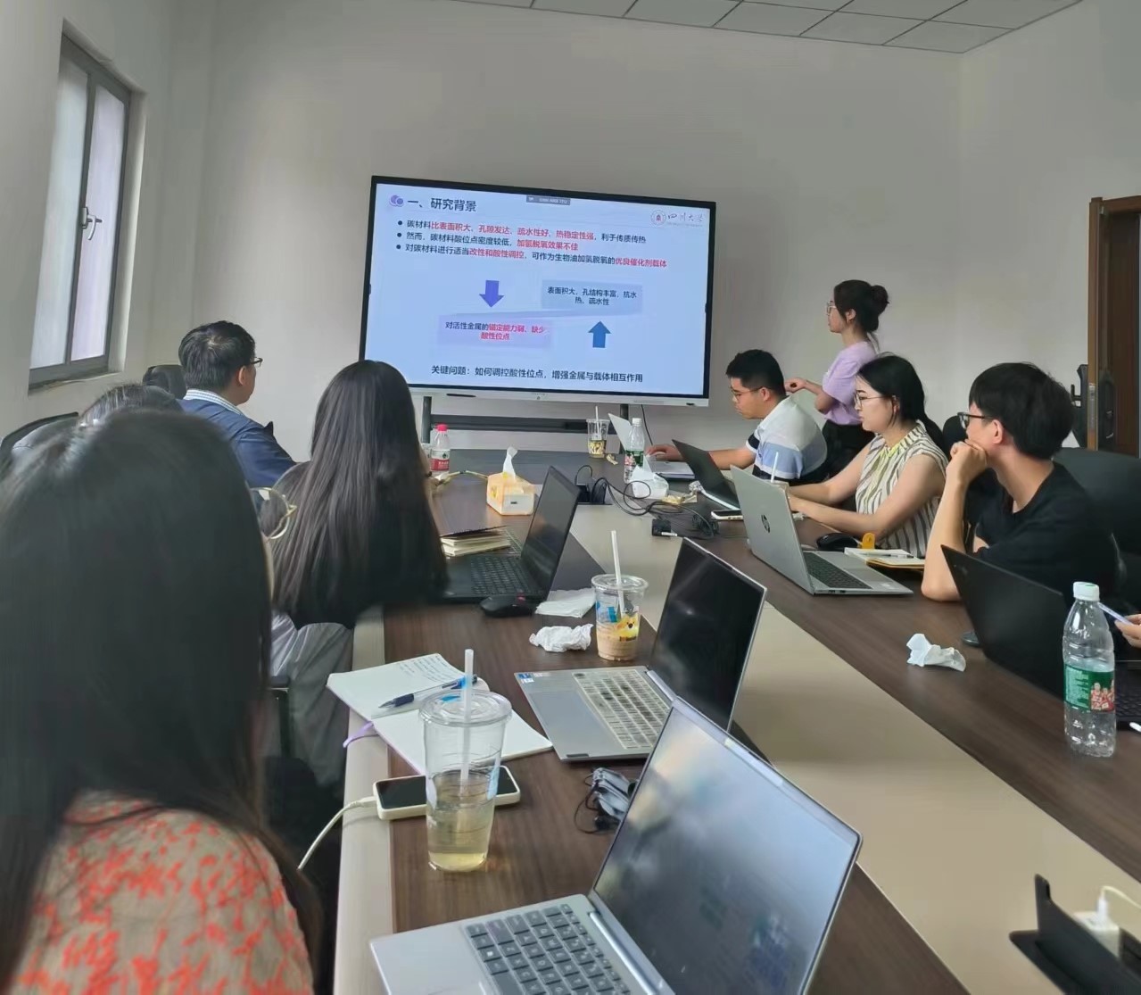 在江安校区脱硫中心进行深入学术交流。课题组谢玲玲、彭琴、甘凤丽、谢天荞、谢欣迪和王星汇报了科研进展。