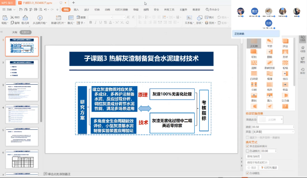 会上,各子任务负责人对照考核指标分别对工作进展、工作成果、存在问题及下一步研究计划开展汇报与交流。要加强各个子任务之间的联系,完善研究内容的衔接,贴合课题任务书的要求,同时提出进一步的工作内容修改建议,有效推动课题顺利执行。
