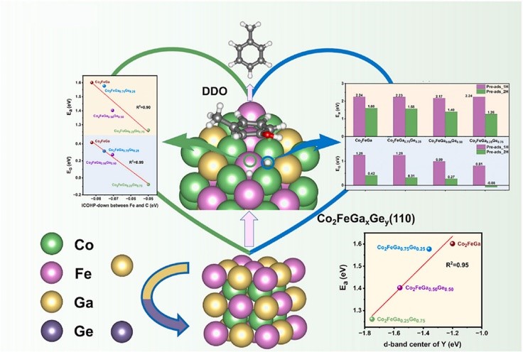 6. Tao Zhou, Shenggui Ma*, Qin Peng, Hongying Liu, Tingying Dou, Xia Jiang*. Selective direct deoxygenation of m-cresol on Heusler alloy catalysts via precise control of electronic structure: An integrated density function theory and microkinetic modeling study. Energy 2024, 312, 133532.